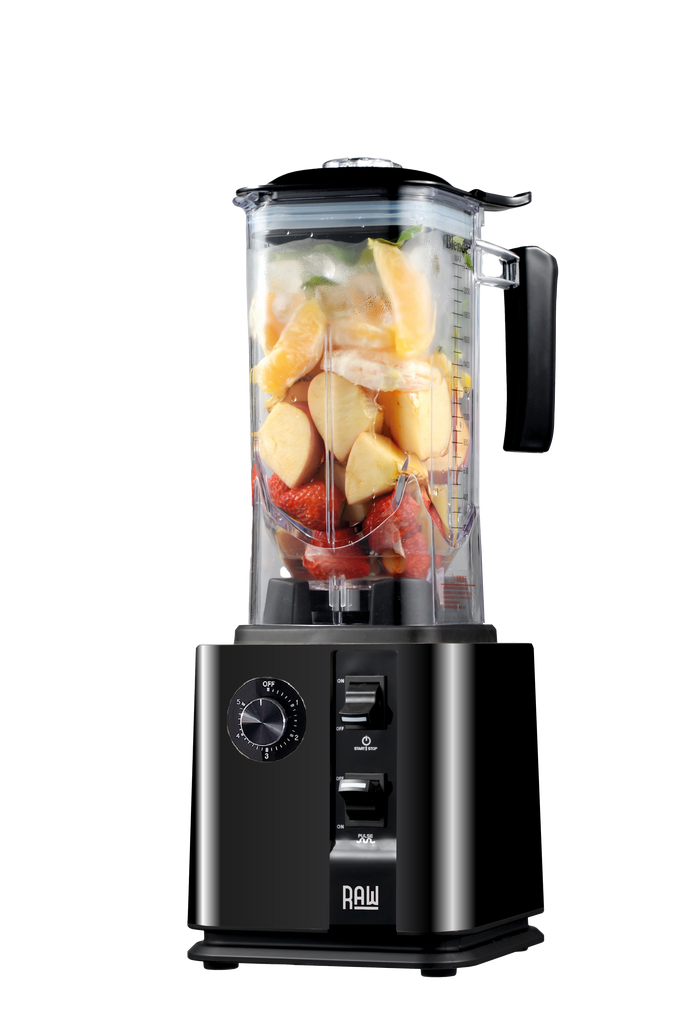 Der Mixer verfügt über eine langlebige Metallkupplung und einen 1800-Watt Motor sowie 2,5 PS, wodurch der RAW Fuel Mixer sich von herkömmlichen Mixern unterscheidet. Der RAW Fuel hat 6 Messer aus gehärtetem Edelstahl und mixt mit 30.000 U/min, wodurch der Mixer die Zutaten effizienter pulverisiert. Die hohe Geschwindigkeit des Mixers und die speziellen Klingen erzeugen eine so hohe Reibung, dass der Inhalt durch nur wenige Minuten Mischen erhitzt werden kann. Der RAW-Mixer ist auch so leistungsstark und effektiv, dass er die Zellwände in Lebensmitteln zerstören und Vitamine und Mineralien freisetzen kann, die dann vom Körper leichter aufgenommen werden können.