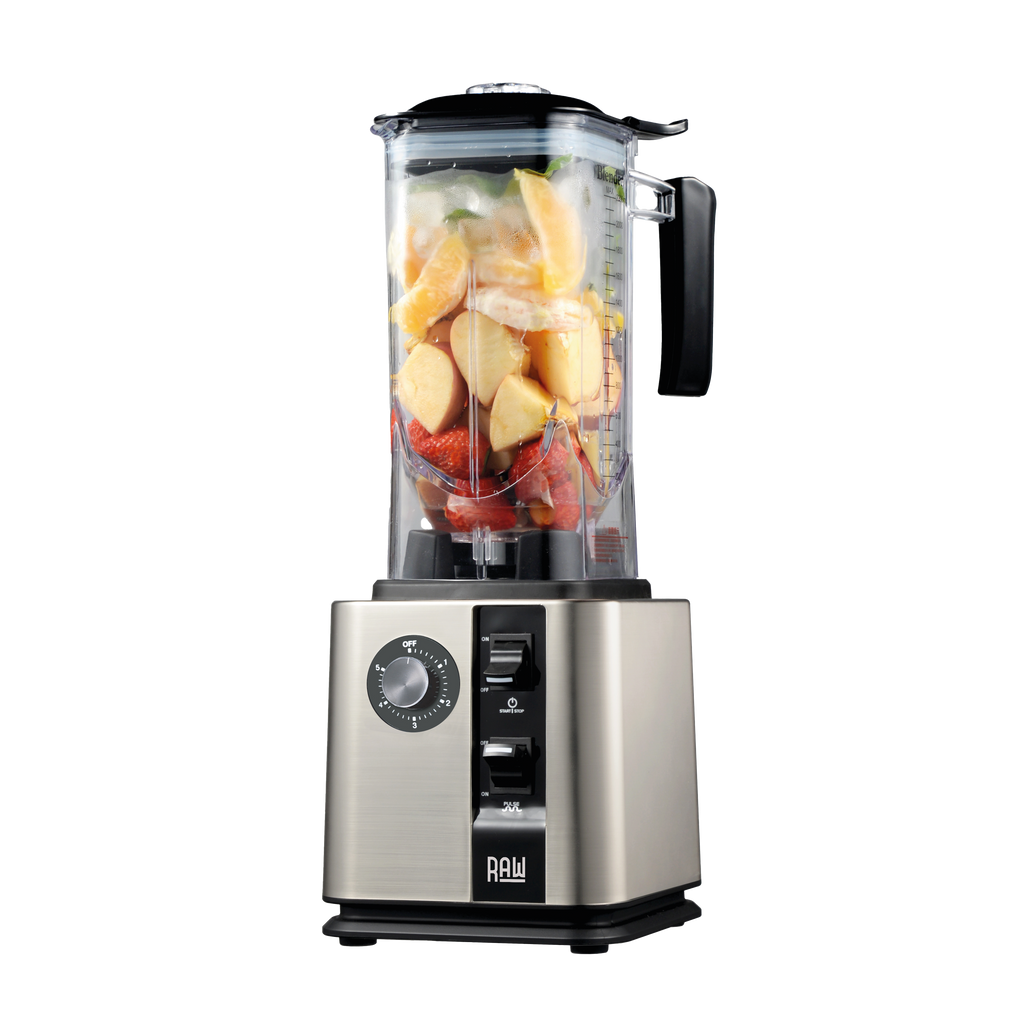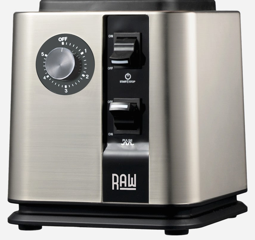 Der Mixer verfügt über eine langlebige Metallkupplung und einen 1800-Watt Motor sowie 2,5 PS, wodurch der RAW Fuel Mixer sich von herkömmlichen Mixern unterscheidet. Der RAW Fuel hat 6 Messer aus gehärtetem Edelstahl und mixt mit 30.000 U/min, wodurch der Mixer die Zutaten effizienter pulverisiert. Die hohe Geschwindigkeit des Mixers und die speziellen Klingen erzeugen eine so hohe Reibung, dass der Inhalt durch nur wenige Minuten Mischen erhitzt werden kann. Der RAW-Mixer ist auch so leistungsstark und effektiv, dass er die Zellwände in Lebensmitteln zerstören und Vitamine und Mineralien freisetzen kann, die dann vom Körper leichter aufgenommen werden können.